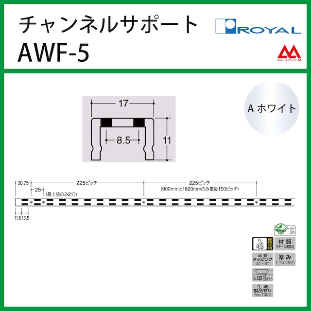 【ロイヤル】チャンネルサポート【ダブル】 AWF-5 1820㎜ 奥行11㎜ Aホワイト