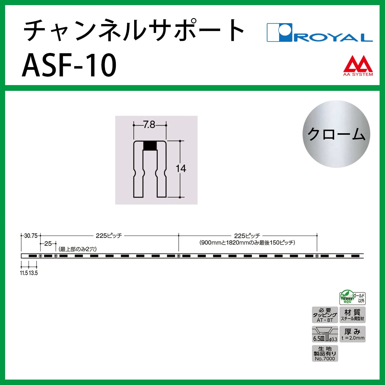 【ロイヤル】チャンネルサポート【シングル】 ASF-10 600㎜ 奥行14㎜ クローム