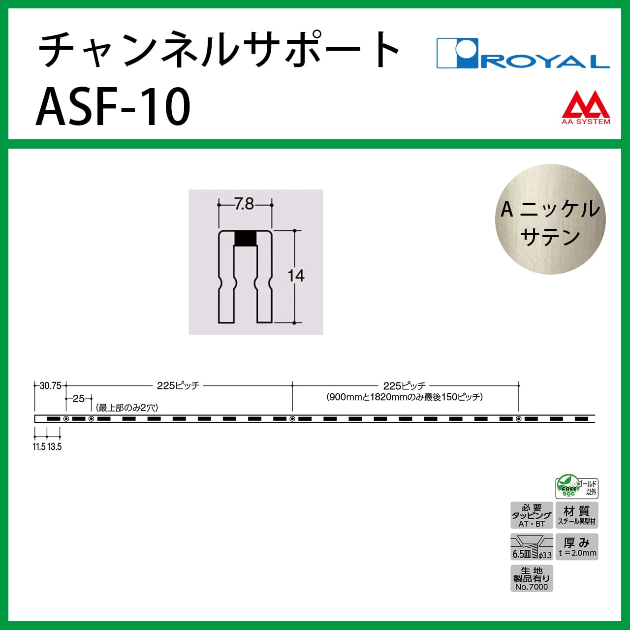 【ロイヤル】チャンネルサポート【シングル】 ASF-10 600㎜ 奥行14㎜ Aニッケルサテン