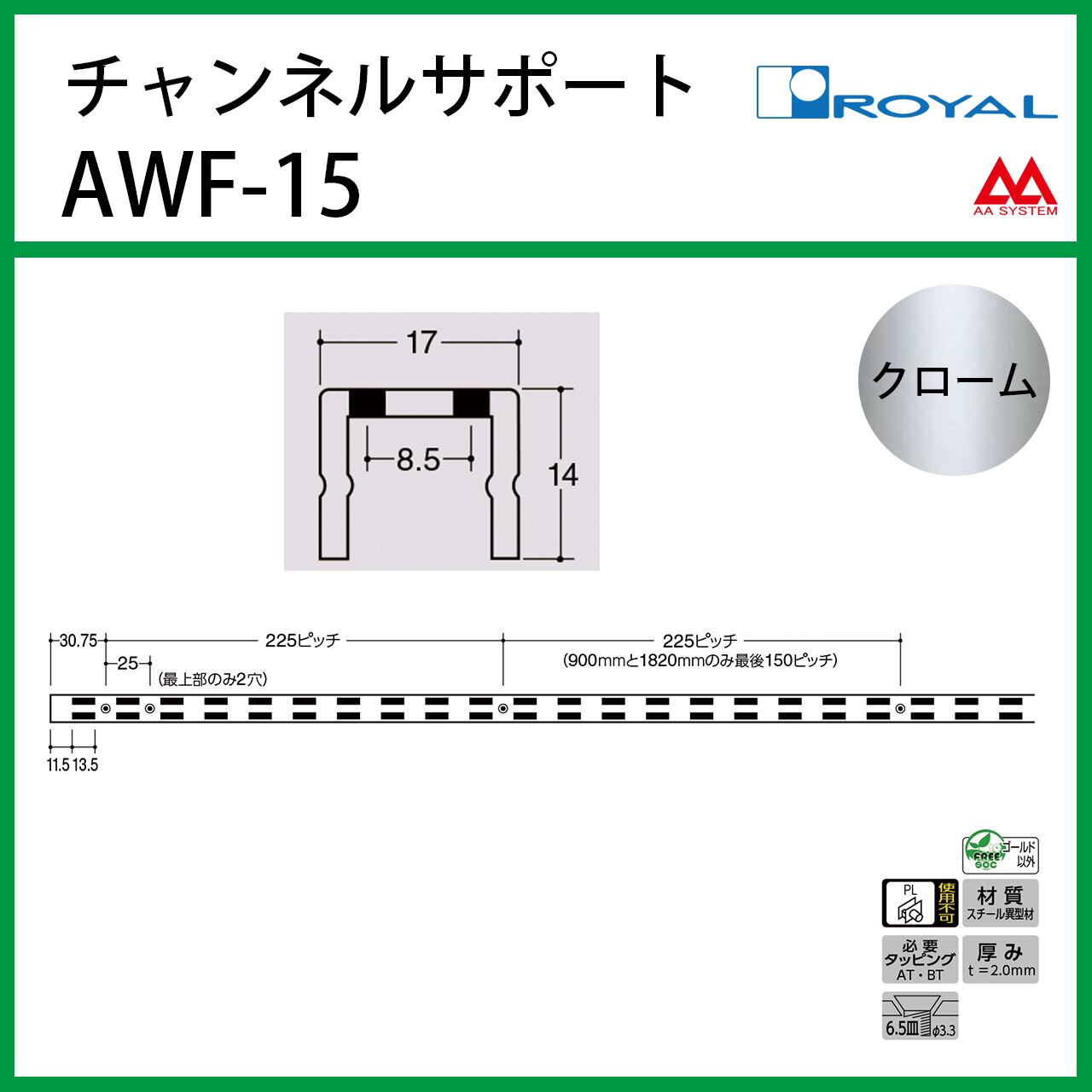 【ロイヤル】チャンネルサポート【ダブル】 AWF-15 2400㎜ 奥行14㎜ クローム
