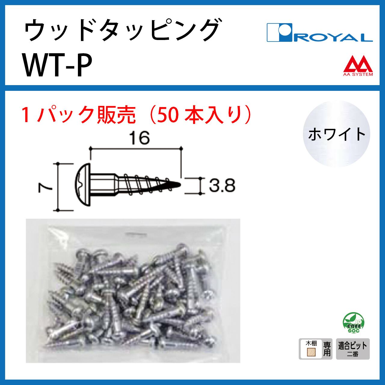 【ロイヤル】Wタッピングビス【木棚固定用】 WT-P 16㎜ ホワイト