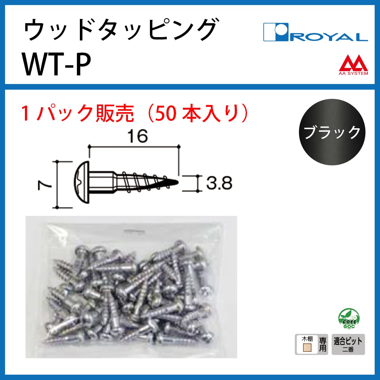 【ロイヤル】Wタッピングビス【木棚固定用】 WT-P 16㎜ ブラック